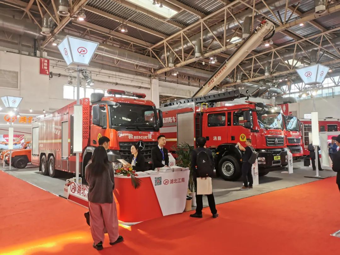 湖北江南專(zhuān)用特種汽車(chē)有限公司攜最新科技產(chǎn)品---奔馳底盤(pán)壓縮空氣泡沫車(chē)、32米舉高噴射消防車(chē)、泵浦消防車(chē)、勇士四驅(qū)遠(yuǎn)程供排水搶險(xiǎn)車(chē)、勇士四驅(qū)布管車(chē)/水帶敷設(shè)車(chē)精彩亮相,向觀眾展示安全、快捷、智能、高效的應(yīng)急救援解決方案及系列產(chǎn)品。
