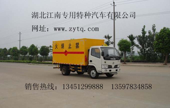 2、 廂式運輸車的車廂是單層的,而炸藥運輸車的車廂是內(nèi)外兩層的,中間裝有阻燃隔熱材料。