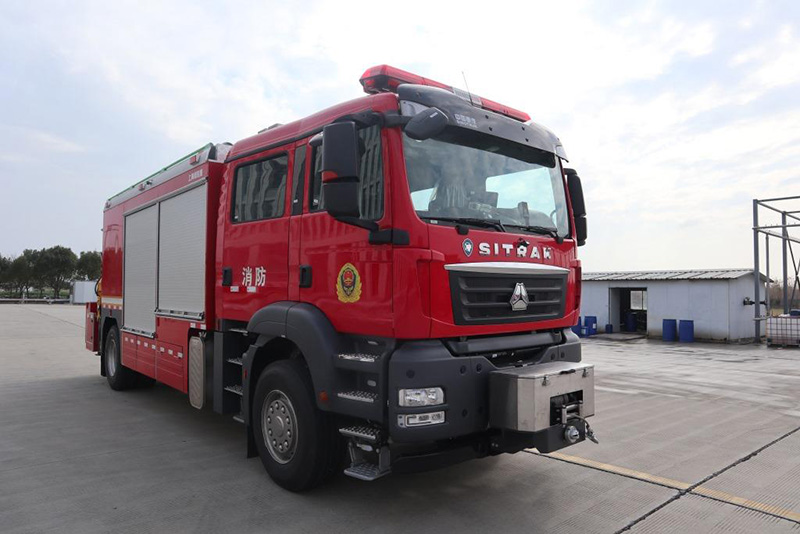 湖北江南研發(fā)的救援消防車,采用重汽汕德卡底盤,4500mm軸距350馬力發(fā)動機。